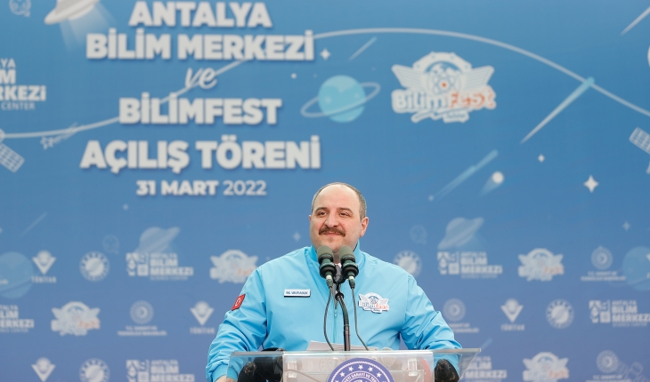 Sanayi ve Teknoloji Bakanı Mustafa Varank, Antalya'da Türkiye'nin en büyük, Akdeniz'in ise ilk bilim merkezini açtıklarını belirterek, "Burası teknolojik donanımıyla uygulamalı atölyeleriyle interaktif sergileri ve kütüphanesiyle devasa bir bilim kompleksi." dedi.