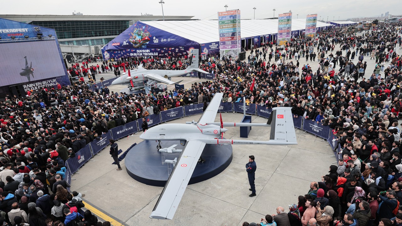 Festival kapsamında ilk kez sergilenen, kısa pistli gemilerden kalkış ve iniş kabiliyetine sahip Bayraktar TB3 SİHA, vatandaşlarda yoğun ilgi gördü.