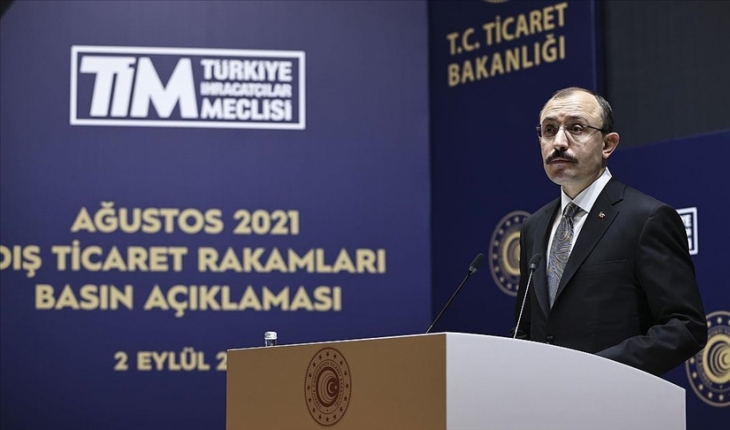 İhracatta 2021 yılı boyunca ortaya konulan güçlü performansın ağustos ayında da devam ettiğine işaret eden Muş, "İhracatımız geçtiğimiz yılın ağustos ayına göre yaklaşık yüzde 52'lik artışla 18,9 milyar dolar seviyesinde gerçekleşmiştir. Memnuniyetle ifade etmek isterim ki bu rakam ile en yüksek ağustos ayı ihracat rakamına ulaşmış bulunuyoruz. Ayrıca, son 12 aylık ihracat değerimiz de 207,5 milyar dolar ile yeni bir cumhuriyet rekoru kırmayı başarmıştır." diye konuştu.