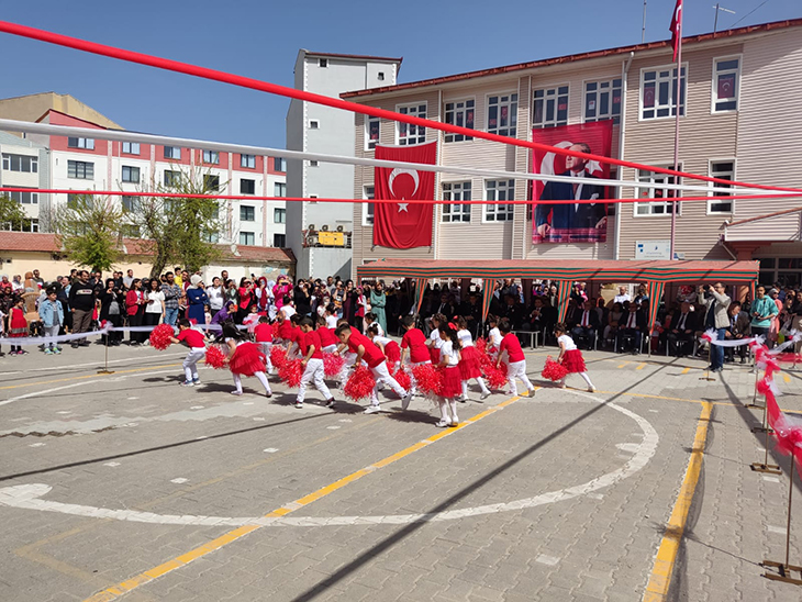 Merkez İlkokulu bahçesinde devam eden törenlerde, öğrenciler tarafından hazırlanan çeşitli gösterilerle, yarışmalar protokol üyeleri ve öğrenci velileri tarafından beğeni topladı.