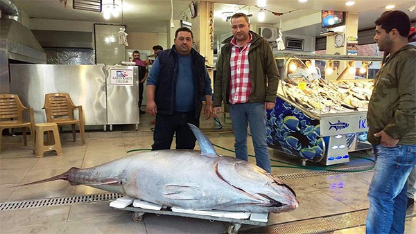 Ege'de 403 kiloluk 'dev orkinos' balığı yakalandı