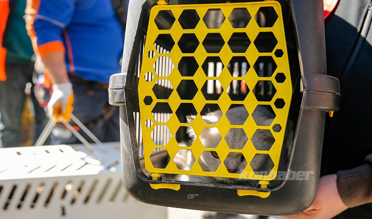 AFAD ortaklığıyla yürütülen çalışmada, depremlerde ağır hasar gören Galeria İş Merkezi ve üstündeki sitede 13 kedi kurtarıldı.