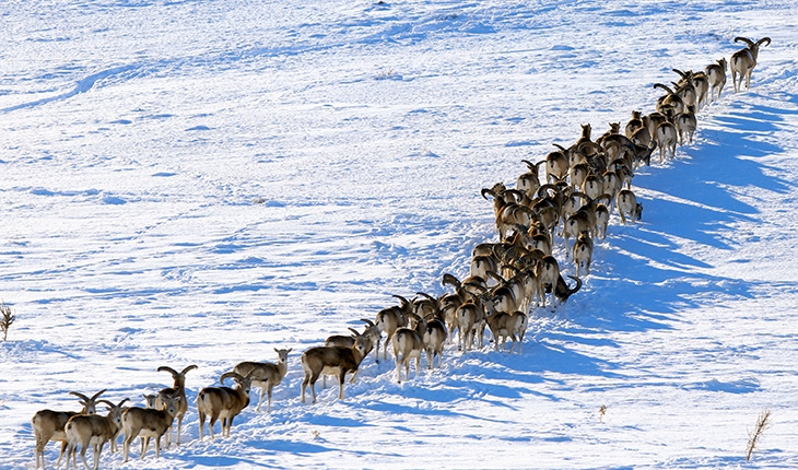 Doğa Koruma ve Milli Parklar 8. Bölge Müdürlüğü bünyesindeki 60 bin hektarlık yaşam alanlarında varlığını sürdüren Anadolu yaban koyunları, heybetli yapılarıyla görenlerin dikkatini çekiyor.