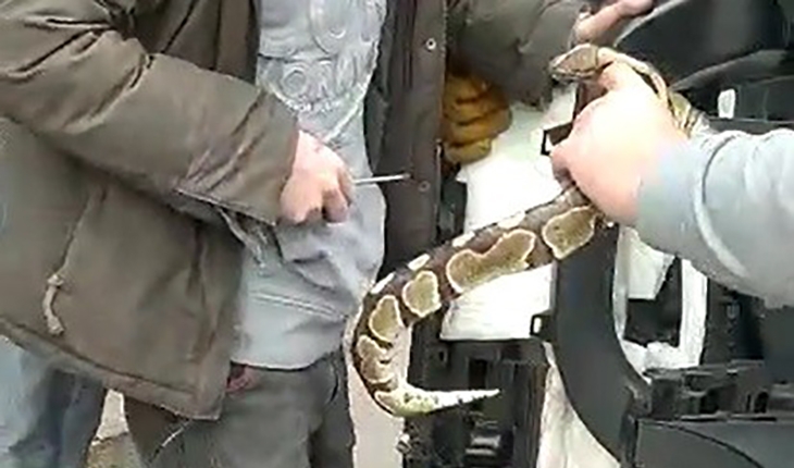 Canlıyı fare zanneden iş yeri çalışanları daha sonra bunun yılan olduğunu öğrenince şaşkınlık yaşadı. Çalışanlar uzun uğraşlar sonucunda yılanı çıkararak sahibine teslim etti. Yılanın araçtan çıkarılma anı ise bir vatandaş tarafından cep telefonuyla kaydedildi. Görüntülerde, yılanın araçtan çıkarıldığı ve sahibine teslim edildiği görülüyor. Yılanına kavuşan sahibinin ise yılanı alıp sevmesi ve verdiği ilginç tepki de kayıtta yer alıyor.