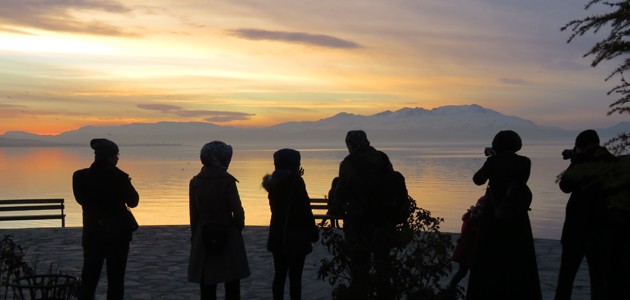 “Gün batımı anlarında ellerinde fotoğraf makineleriyle fotoğraf topluluklarını, bireysel olarak gelenleri, cep telefonlarıyla çekim yapmak isteyen birçok insanı göl kıyısında görebilmek mümkün. Tabi gün batımını çekerken, ışığı iyi kullanmak gerekiyor. Işık, tam karşımızda olduğu için çekeceğimiz her şey, silüet görüntüsüyle olacaktır. Bazı yanılmalar olabiliyor bu konuda; ‘hem gün batımı, hem yüzümüz gözüksün’ gibi… Işık, karşıda olduğu için yüz değil, fotoğraf karelerinde silüet ortaya çıkmaktadır. Buna dikkat etmemiz gerekiyor. Asıl çekim zamanı ise güneş battıktan sonra ortaya çıkıyor. Yani, batışın ardından ışık bize yarım saate kadar daha süre veriyor. Fotoğraf makinelerimiz, cep telefonlarımız bu süreçte çekime devam edebiliyor. Hava siyaha büründüğü zaman çekim zamanı da sonlanmış oluyor. Dolayısıyla, güneş battıktan sonra 15-25 dakika daha bulutların kızardığı anlar da grup vakti çok güzel görüntüler, görsel bir şölen sergileyebiliyor. Bu anlarda, sanıyorsunuz ki, Beyşehir Gölü yüzeyi alev alev yanıyor. Böyle, yılın birçok gününde Beyşehir Gölü üzerinde bu tür kartpostallık manzaralara tanıklık edebiliyorsunuz.”