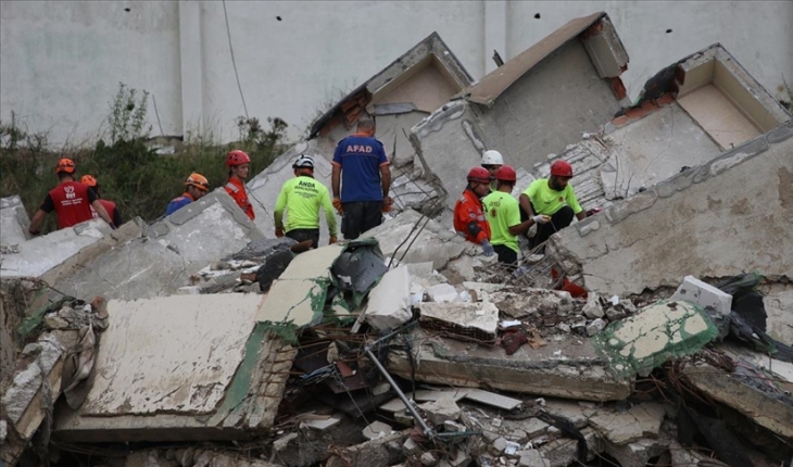 Kastamonu'nun Bozkurt ilçesinde vatandaşlar sel nedeniyle yıkılan binanın enkazında sürdürülen arama çalışmalarından gelecek güzel haberi bekliyor.