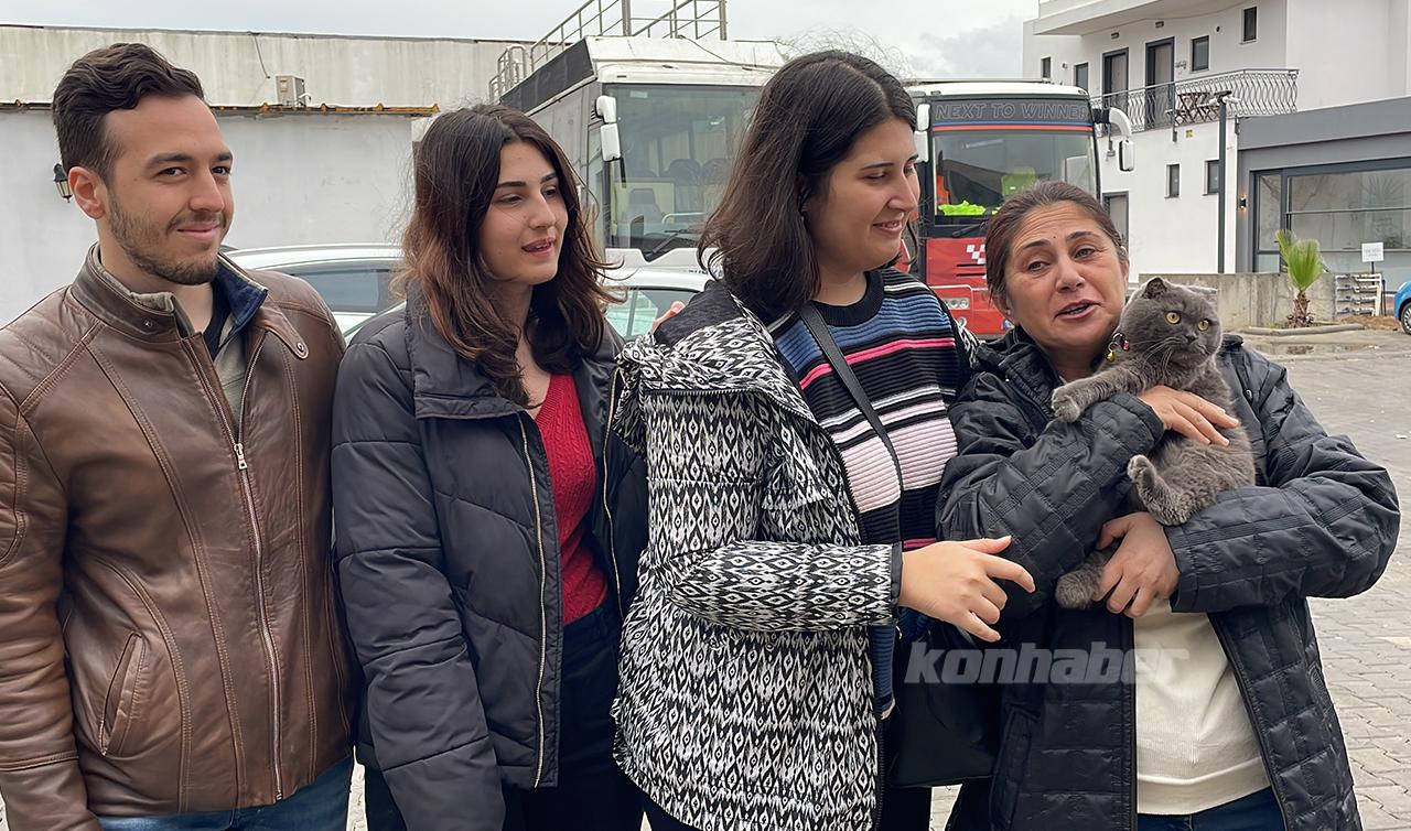 Bodrum Afet Koordinasyon Talep Kabul Merkezi önünde kedileri "Tarçın"ı teslim alan Altun ve çocukları, kavuşma sırasında sevinç yaşadı.