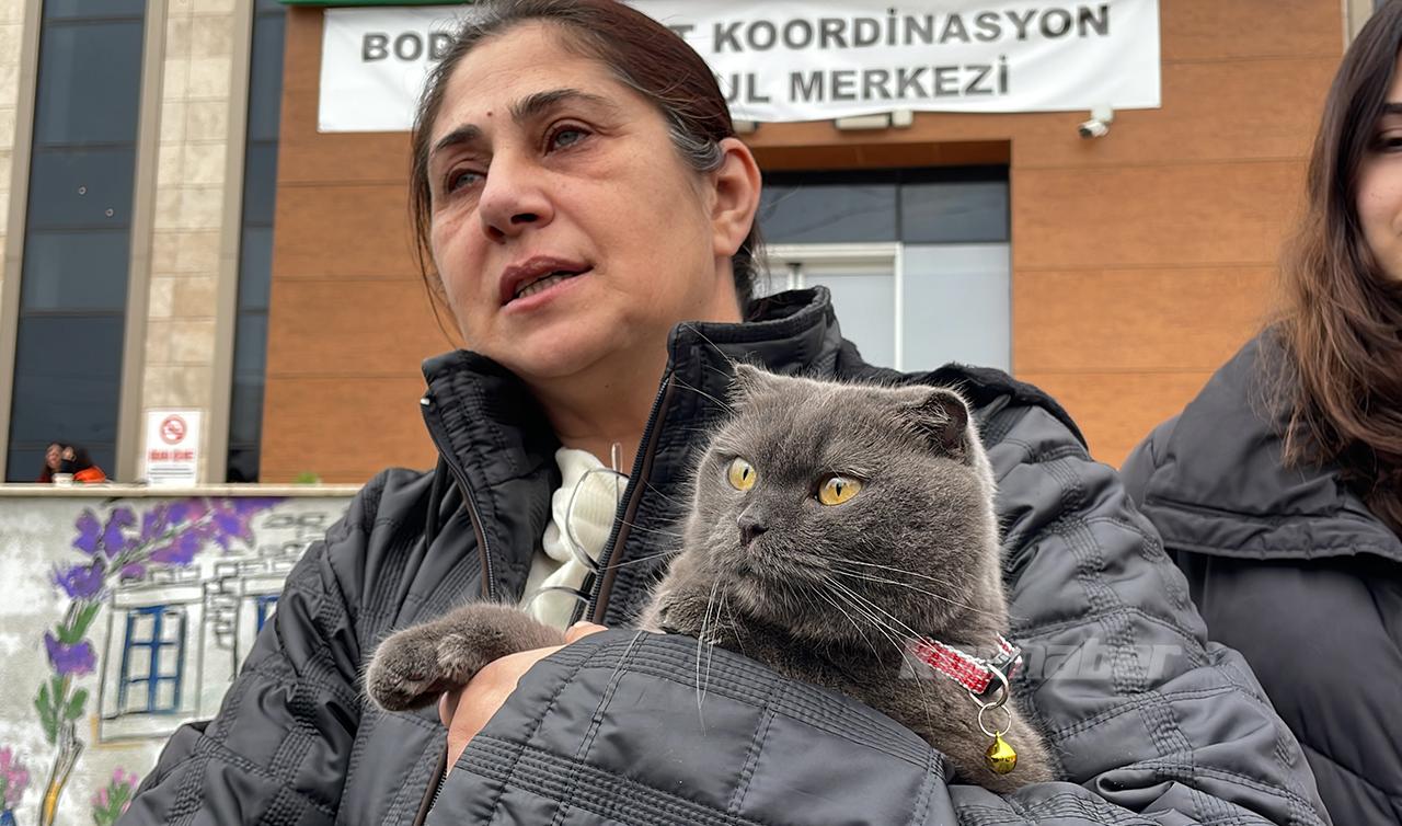 Hatay'daki evleri depremlerde hasar gördüğü için Muğla'nın Bodrum ilçesine gelen afetzede kadın, sarsıntıdan korkup kaçan 6 aylık kedisi "Tarçın"a yeniden kavuşmanın mutluluğunu yaşadı.