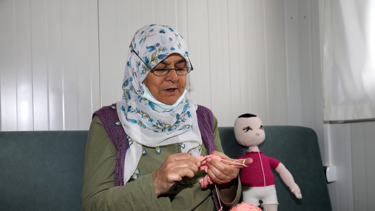 Ağlamış, örgü bebek yapmaya konteynerde devam edeceğini dile getirerek, "Allah'ım devletimizden razı olsun, bize bu imkanları sağladı. Devletimiz bize daha ne yapsın? Hastasına, çaresizine bakıyor." şeklinde konuştu.