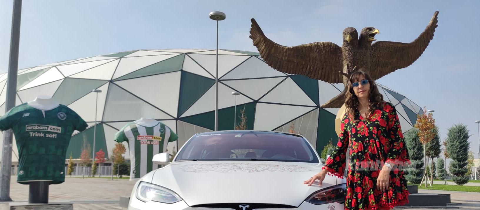 Elektrikli otomobiliyle dünyayı gezen Halide Studer’ın Türkiye’deki 63. durağı Konya oldu.