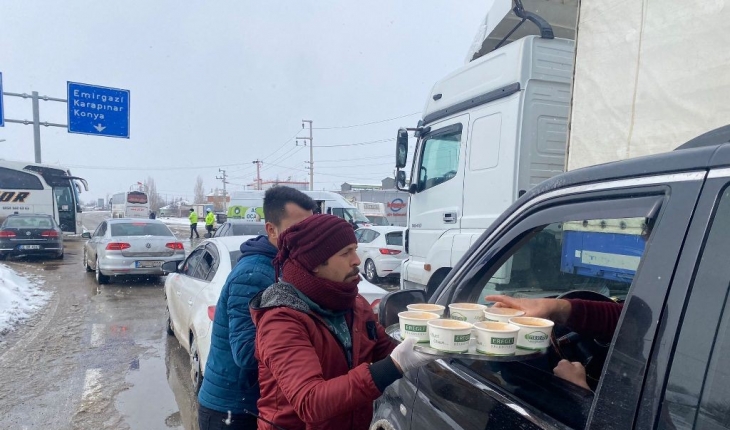 Konya’nın Ereğli İlçe Belediyesi yoğun kar ve tipi sebebiyle yolda kalan vatandaşlara sıcak çorba ikramında bulundu.
