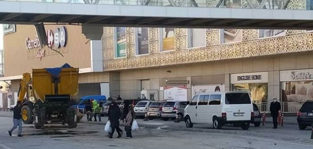 Konya’da yoldan geçen hafriyat kamyonu alışveriş merkezine giriş için kullanılan yaya üst geçidine çarptı.