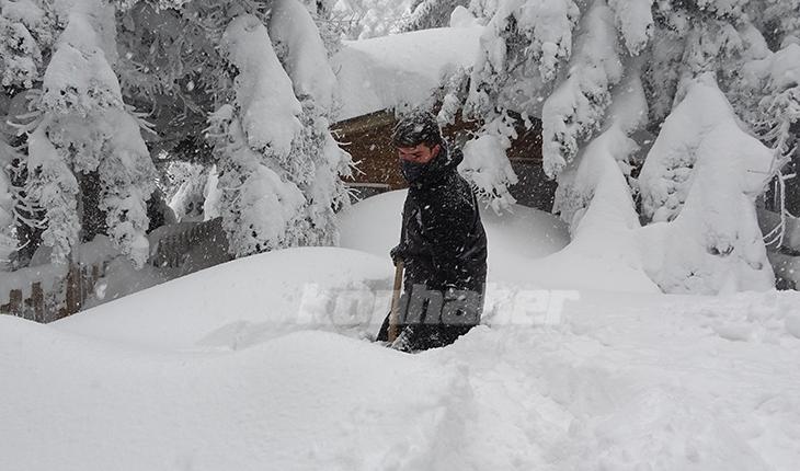 Uludağ’da bulunan orman köşkleri; kar kalınlığının 2 metreyi bulmasıyla kar altında kaldı. Tatilciler her yeri karla kaplı evlere tünelleri andıran yollardan ulaşıyor. Evlerin camları ise yoğun kar sebebiyle güçlükle açılabiliyor.