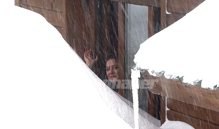 Camlarını açtığında karşılarında dev kar kütlelerini gören yeril ve yabancı tatilciler, masalsı bir tatil imkanı sunan köşklere hayran kaldı. İşletme çalışanları ise ellerinde küreklerle köşklerin girişlerini açmak için mücadele veriyor.