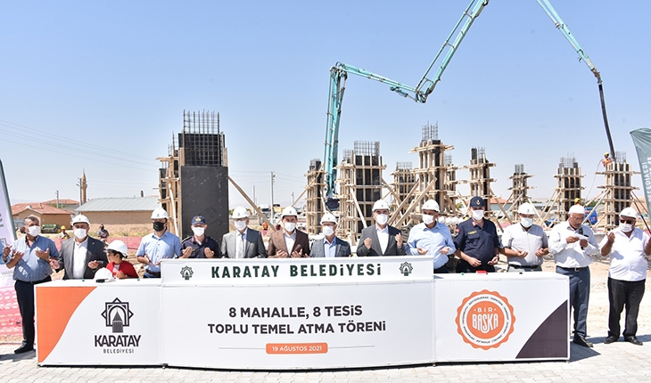 Karatay Belediyesi ilçeye kazandırdığı sosyal tesislere yenilerini ekliyor. Bu kapsamda Belediye tarafından Büyükburnak, Esentepe, Yenikent, Acıdort, Zincirli, Divanlar, Ortakonak ve Yavşankuyu Mahallelerine kazandırılacak sosyal tesis ile kurs merkezlerinin temelleri, düzenlenen toplu törenle atıldı.
