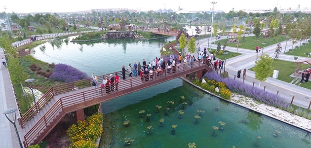 Göletin farklı noktalarındaki nilüferleri fotoğraflayan vatandaşlar yeşilin güzelliğinin keyfini Şehir Parkı'nda çıkarıyor.