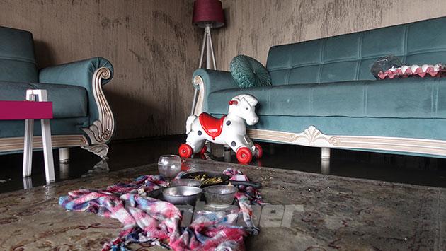 Evin kapısını kırarak içeriye giren itfaiye ekiplerince yangının söndürülmesinin ardından, eşyaların çoğunun kullanılamaz hale geldiği ve yangından dolayı büyük hasar meydana geldiği görüldü.Yangın sırasında aşağıya atlayarak hayatını kaybeden küçük Melek'in yanan eşyaları ise görenlerde derin bir hüzün bıraktı.