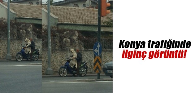 Konya’da sahibiyle birlikte motosiklete binip şehrin caddelerinde gezintiye çıkan köpek, görenleri şaşırtıyor.