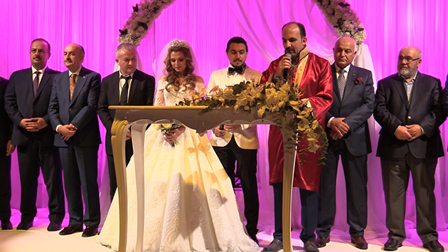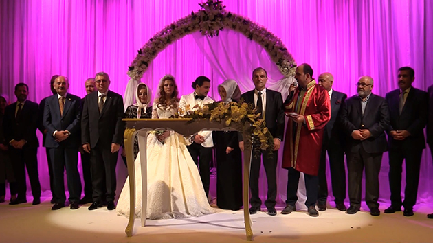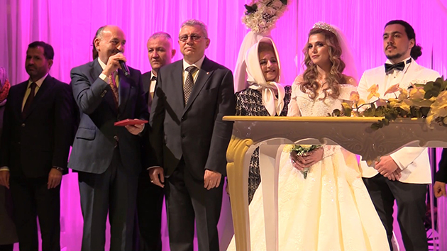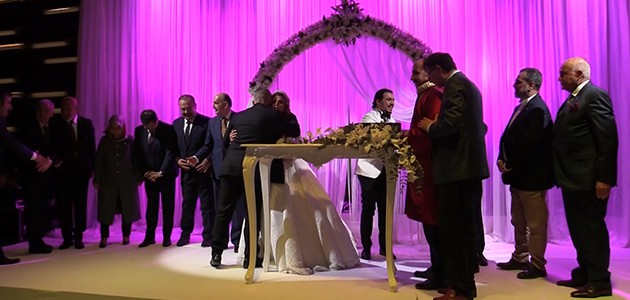 Mehmet Ali Arıcı ve Ayşe Harmankaya’nın şahitliklerini ise Eski Bakanlardan Mehmet Müezzinoğlu, Vali Yakup Canbolat, AK Parti İl Başkanı Hasan Angı ve milletvekilleri yaptı. Genç çifte evlilik cüzdanını Mehmet Müezzinoğlu verdi.