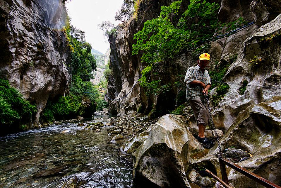 Çoğu kanyonda, yamaçların kenarındaki ahşap yürüyüş yollarında yürüyebilir veya uygun yerlerden su geçişleri yaparak ilerleyebilirsiniz. Ancak Saklı Cennet, burada makaralı sistemle kurulmuş bir sala binmenizi ve makarayı çekerek 300 metre kadar ilerlemenizi sağlar. Bu benzersiz deneyimi yaşamanızı kesinlikle tavsiye ediyoruz. İki kayalık yamacın arasındaki dar akarsuda sal ile ilerlerken kendinizi bambaşka bir dünyada bulacaksınız.