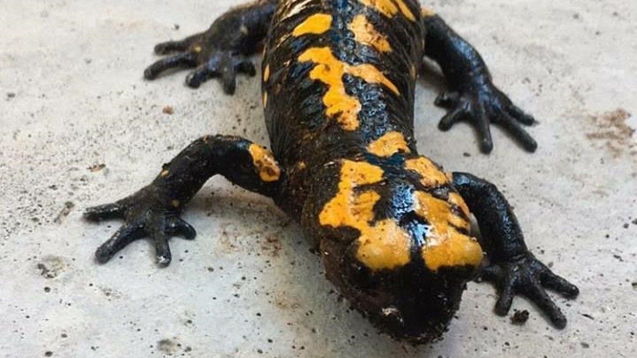 Kahramanmaraş'ta "Türk semenderi" olarak bilinen ve nesli tehdit altında olan "sarı benekli semender" görüntülendi.