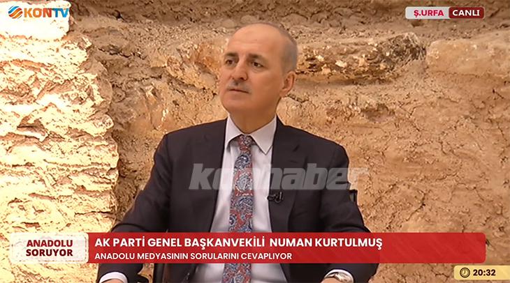 AK Parti Genel Başkanvekili Numan Kurtulmuş, KONTV dâhil 25 yerel televizyonda yayımlanan "Anadolu Soruyor Programı"nın canlı yayınında gündeme ilişkin değerlendirmelerde bulundu, soruları yanıtladı.