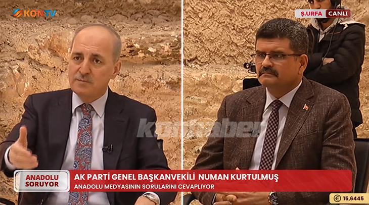 KONTV ve çok sayıda Anadolu kanalının ortak canlı yayınıyla izleyicilerle buluşan “Anadolu Soruyor” programının bu haftaki canlı yayın konuğu Ak Parti Genel Başkanvekili Prof. Dr. Numan Kurtulmuş oldu.