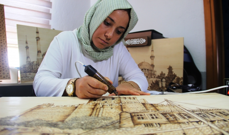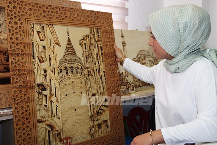 Konya’da bir ilkokulda güvenlik görevlisi olarak çalışan Yasemin Akın, mezun olduğu güzel sanatlar alanında çalışmaya karar verdi. Halk Eğitimde kursiyerlere eğitim veren Akın, merak sardığı ahşap yakma sanatı kendine gelir kapısı oldu.