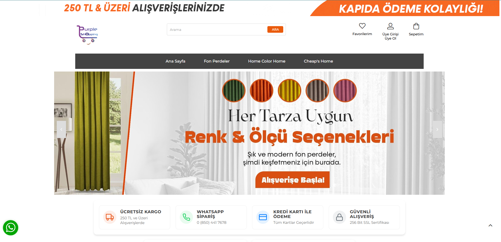 Purple Shopping sunduğu uzmanlık, geniş fon perdeler kataloğu ve bütçe dostu Cheap's Home serisiyle ev dekorasyonuna taze bir bakış açısı getiriyor. Ücretsiz kargo, güvenli ödeme, hızlı teslimat ve çevre dostu üretim ilkeleriyle desteklenen bu bütünsel yaklaşım, markayı perde alışverişinde Türkiye’nin en güvenilir dijital adreslerinden biri hâline getiriyor. Evini yenilemek isteyen herkesi “stil ve tasarrufun buluştuğu” Purple Shopping dünyasını keşfetmeye davet ediyor.