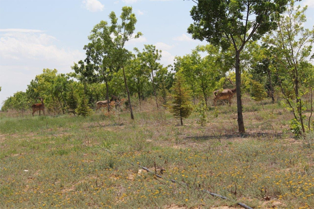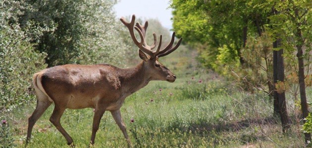 Geyikler, kendileri için ayrılan 2 bin dekarlık alanda özgürce dolaşıyor. Ortaya çıkan bu manzara, akıllara safari belgesellerini getiriyor.