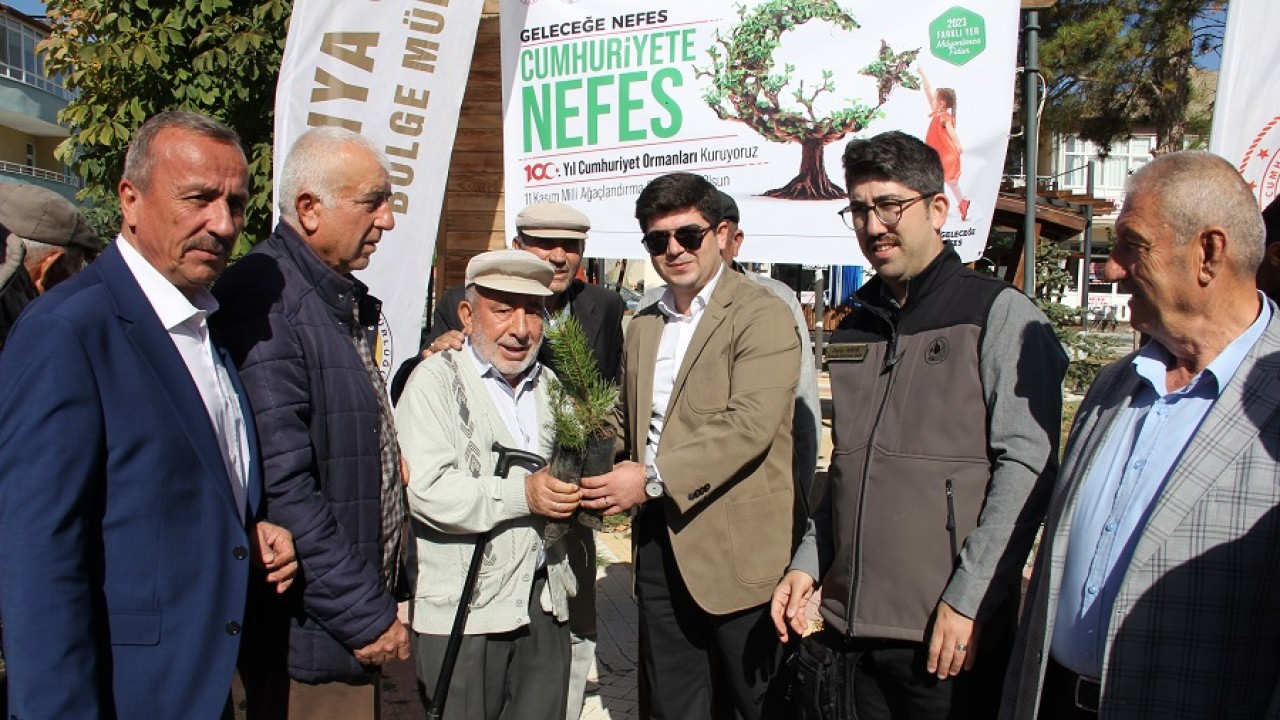 Yalıhüyük'te Cumhuriyet'in 100. yılı anısına fidan dağıtımı yapıldı.