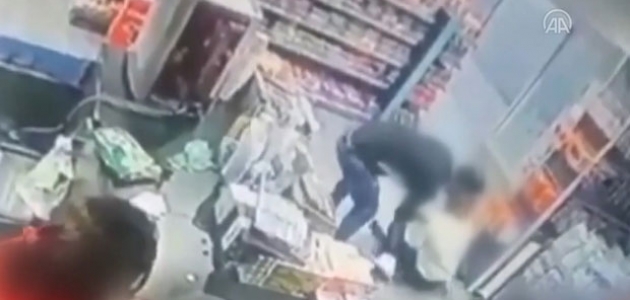 Yozgat'ta akaryakıt istasyonunun marketinde bir kadının darbedilmesi güvenlik kamerasınca kaydedildi.