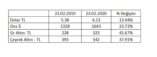 Altın her zaman en güvenli yatırım araçlarından biri olmuştur ve olmaya da devam edecektir. 2020 yılı için Ons ve TL bazı biraz daha yukarı yönlü hareketlerin olması muhtemeldir. Dolar tl’nin yılsonu 6,80 civarında olacağı muhtemel olduğu için altın gram fiyatının da 365 TL seviyelerinde olması ön görülmektedir. Tabi ki burada teknik bilgiler dışında yaşanabilecek diğer değişkenlere de bağlı olarak hareket edecektir. Merkez bankalarının tutum ve parasal politikaları altın için etkili olacaktır. Yaşanabilecek olumsuzlukların dışında parasal genişleme ve likitide bolluğu yaşanacağı için altın yükselişinin devam etmesi muhtemeldir.