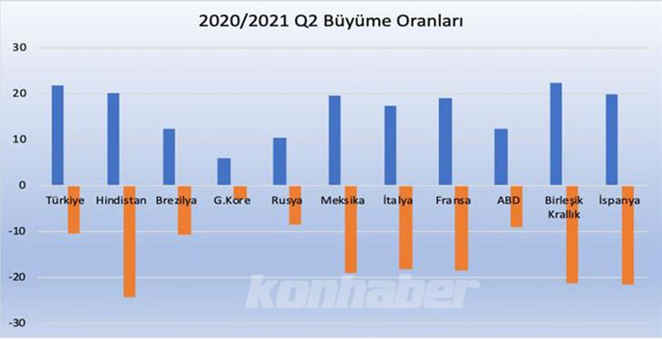 Ekonomik verilere baktığımızda Türkiye 2021 yılı 2.Çeyrek döneminde yıllık bazda %21,7 büyüme ile rekor kırdığını görüyoruz. Çeyreklik bazda baktığımızda ise büyüme %0,9 olarak gerçekleşmektedir. (Önceki %1,7)