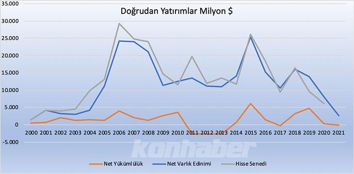UNCTAD'a göre tüm dünyada doğrudan yatırımlarda 2019 yılında 1,5 trilyon $ iken, 2020 yılında %42 gerileyerek 859 milyar $ seviyesine inmiştir. Ülkemizde ise bu oran %19 seviyesindedir. 1990 yıllarındaki seviyelere kadar düşüş olması şaşırtıcıdır. UNCTAD'a göre, 2020 doğrudan yabancı sermaye yatırımları, 2008-2009 küresel finansal krizi sonrasından bile %30'dan fazla aşağıdadır.