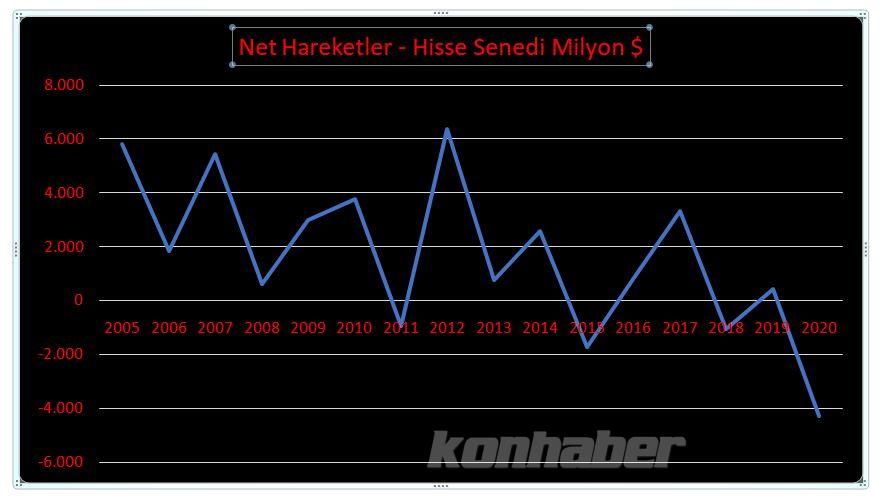 İçeriye baktığımızda ise; hala yabancıların payının %40 seviyelerinde olduğu görülmektedir. Yabancı yatırımcılar 13 Ağustos haftasında 78 milyon $ hisse senedi alırken, 45 milyon $ tahvil satışı gerçekleştirdi. Bir önceki hafta ise 114 milyon $ tahvil alırken, 168 milyon $ hisse senedi almıştı. Türkiye’ye en son Kasım-Ocak arasında art arda 10 hafta net yabancı portföy girişi olmuştur. Merkez Bankası Başkanı değişikliği döneminde ise en fazla haftalık yabancı portföy çıkışı gerçekleşmişti. Yabancıların ellerindeki Türk varlıklarını son 3 yıldır portföylerinden çıkarmaya devam etmektedir. 2020 yılında ise Türkiye’den 5 milyar $ tahvil ve 4,2 milyar $ hisse satarak toplamda 9,2 milyarlık Türk varlığı satışı tüm zamanların en büyük yabancı yatırımcı çıkışı yaşandı. Borsamızın ucuz olduğu konusunda herkes hem fikir fakat yabancı yatırımcıya güven vermediğimiz için girişler sınırlı olmakta ve bu durumda borsanın yükselmesini sınırlamaktadır. Bağlantı