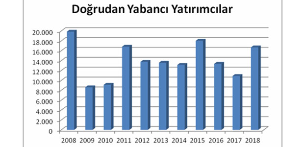 Grafikte 2008-2018 yılları arasında ülkemize yapılan doğrudan yatırımları görmekteyiz. Doğrudan yatırımlar uzun dönemli yatırımlardır ve cari açığın finansmanına yardımcı olmaktadır. İşsilik ve yeni teknolojileri öğrenmemize katkı sağlamaktadır.